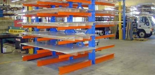 Cantilever racks are a great way to take control and organize a warehouse, lumber yard, or manufacturing facility. So often, companies put bulk items like plywood, dry wall, or sheet steel in piles on the floor, leaving it to the warehouse personnel to constantly sort and pull unrelated, heavy, and bulky items. With cantilever racks, each type of product can be segregated by type and size. A Cantilever rack system pays for itself in labor efficiency, reduction in injury and accuracy in picking stock. You get the benefit of keeping your product safe and organized while at the same time saving much needed space.