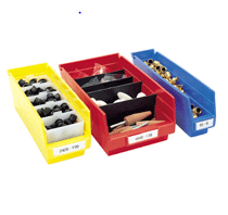 Shelf Bins outlast corrugated bins - paying for themselves in reduced replacement costs. The superior construction of Shelf Bins allows them to be fully loaded without bulging or cracking. Durable polypropylene bins also provide an attractive, neat appearance. Works with 12", 18" and 24" deep shelving, or vertical storage and retrieval units. One-piece construction is waterproof and unaffected by grease or oil.
