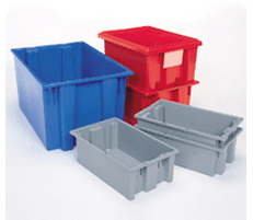 NST's stack with or without lids for dense storage and shipping, and nest when empty. Strong, high-density polyethylene will not rust, corrode or bend out of shape even when fully loaded. Heavy-Duty construction provides a longer service life, resulting in lower replacement costs.