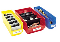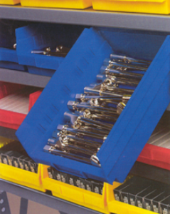 Shelf Bins outlast corrugated bins - paying for themselves in reduced replacement costs. The superior construction of Shelf Bins allows them to be fully loaded without bulging or cracking. Durable polypropylene bins also provide an attractive, neat appearance. Works with 12", 18" and 24" deep shelving, or vertical storage and retrieval units. One-piece construction is waterproof and unaffected by grease or oil.