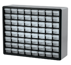 Cabinets stack securely and can also be wall mounted with keyhole slots. A variety of drawer configurations provide versatile storage solutions. Clarified polypropylene, dividable drawers offer easy content identification. Finger-grip drawer pulls provide easy access and rear stop tabs prevent contents from spilling.